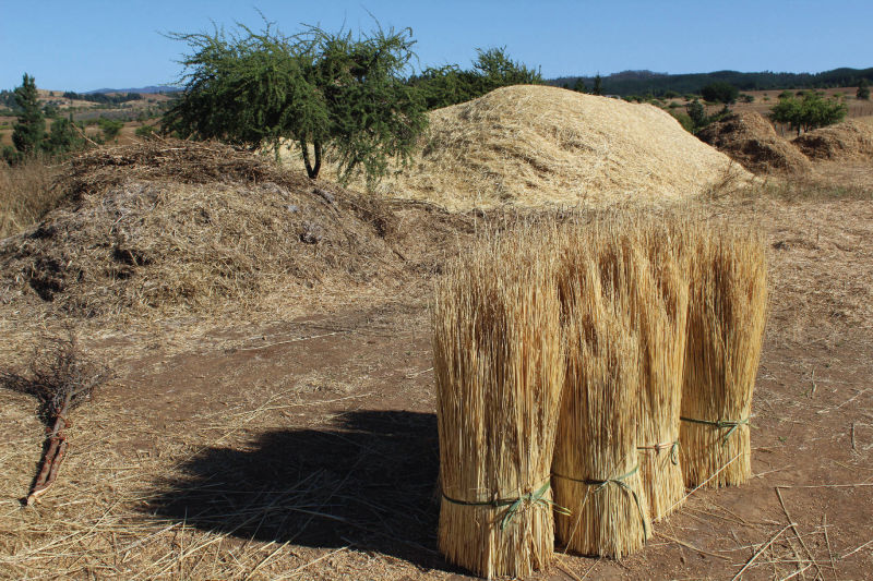 La paja de trigo colorado es la principal materia prima con la que se elaboran las cuelchas para chupallas. Esta variedad de trigo es considerada de bajo rendimiento comercial comparada con las actuales especies de trigo, que se usan para la producción masiva de granos para la alimentación.